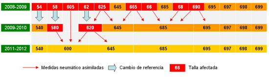 Las talla eliminadas fueron las siguientes: AutoSock 66, 68, 605, 625, 665 y 690.